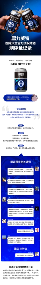 作为深圳洽客科技有限公司旗下新消费品牌的代表,雪力威特凭借卓越的技术实力与品牌运营能力,持续推动跨界融合与消费场景创新。此次与国际米兰足球俱乐部的官方授权合作,不仅是对品牌实力的印证,更是雪力威特在体育营销领域的一次精彩落子。三款联名精酿,承载着球队精神与精酿匠心,我们邀请20位内拉祖里,从专业品鉴到日常畅饮,全方位解锁这三款“有故事的啤酒”,帮助球迷与精酿爱好者找到专属本命款。
