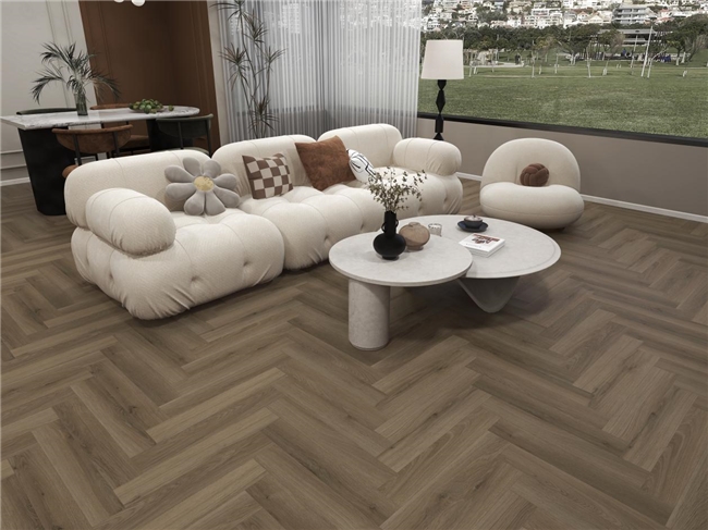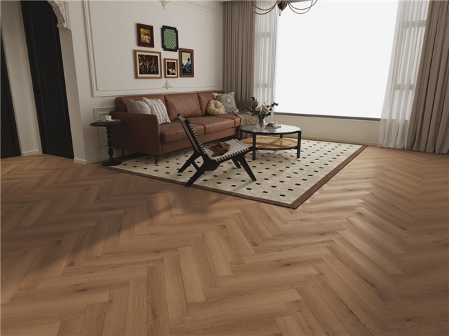 在小红书等社交平台,人字拼地板常年占据“家居装修推荐榜”前列,属于那种还没上任何软装就很美的基础硬装。首先,其45度拼接形成的纵向线条,能有效延伸视觉维度,让小户型看起来显大10%,尤其适合紧凑的客厅或卧室,轻松缓解空间压抑感。其次,它的风格适配性极强:搭配木质家具与棉麻软装,是温馨的日系风;搭配金属元素与浅色系家电,是简约的ins风;搭配焦糖色、棕色单品,又能精准拿捏当下流行的美拉德风,让家居风格切换更灵活。