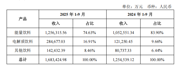 东鹏饮料2025年前三季度报告部分数据
