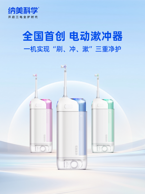 面对市场需求与行业瓶颈,纳美科学依托扎实的研发实力,构建了以“电动双管双组份牙膏”、“Air缓震电动牙刷”及“电动漱冲器”为核心的“三电全护”创新产品矩阵,实现了口腔护理从工具到流程的系统性升级。