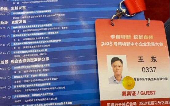 11月12日,2025专精特新中小企业发展大会在重庆开幕。青岛中新华美塑料有限公司作为国家工信部第四批专精特新“小巨人”企业,总经理王东先生受邀参加。