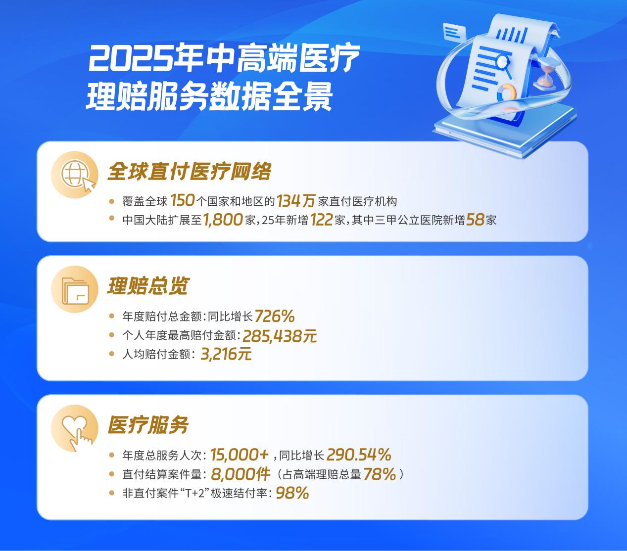 25年直付结算案件量达8000件,占高端医疗险理赔总量的78%。客户在合作医疗机构享受“签字离院、零支付压力”的就医体验。即使在非直付场景下,借助电子病历集成与智能理算系统,仍有85%的客户获得无缝服务衔接,体现其系统化服务能力。