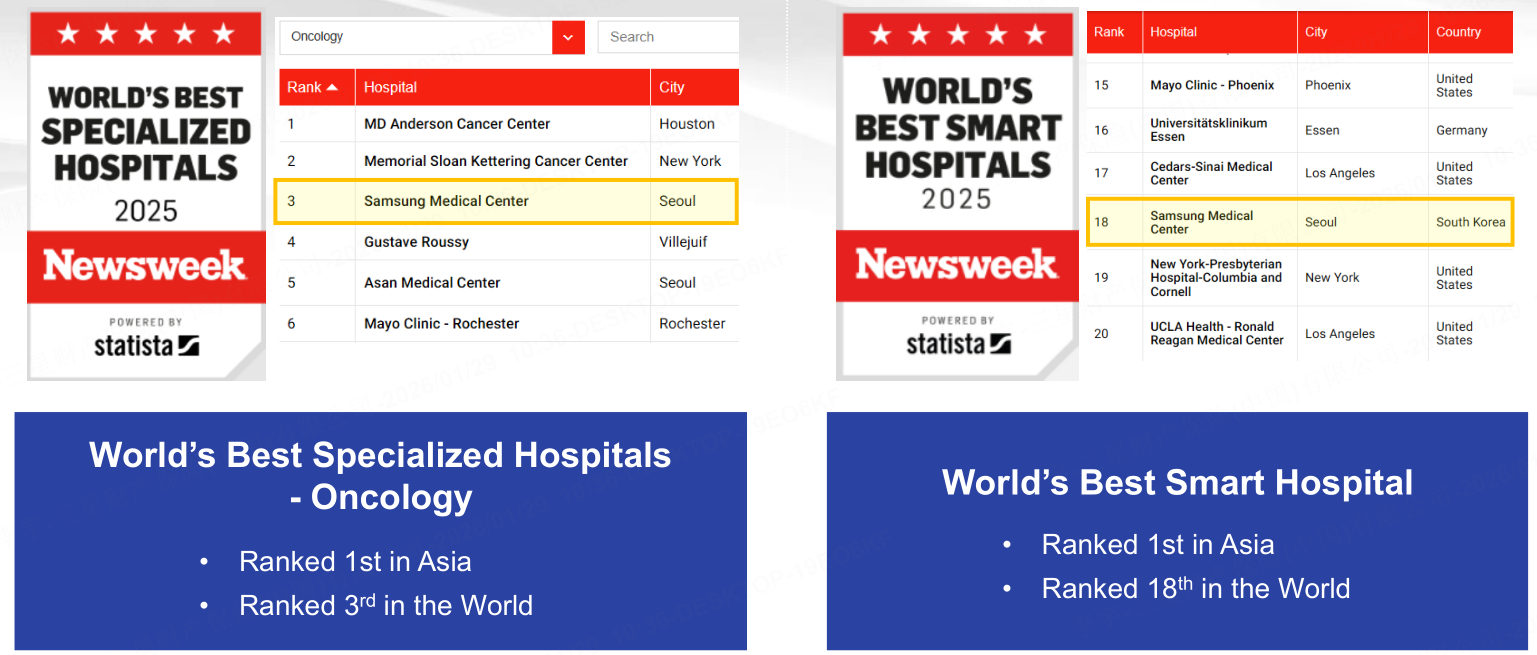 三星首尔医院,在2025年多项国际权威评选中奠定了其全球顶尖医疗机构的地位。该院在《新闻周刊》发布的“2025年世界最佳专科医院”榜单中,其肿瘤学科位列全球第三。同时,在“2025年世界最佳智慧医院”榜单中,高居全球第18位。