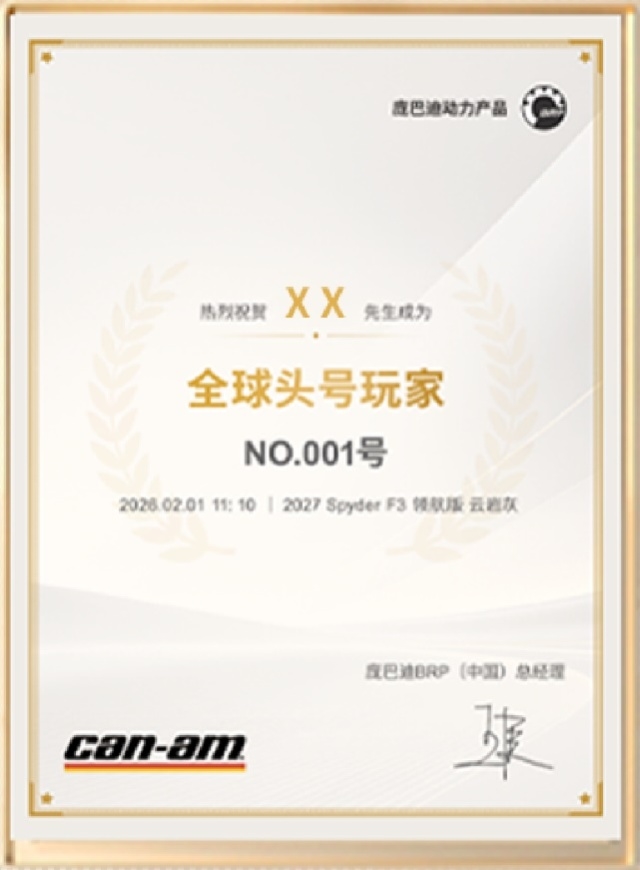 金融政策:低首付/零利率,名额有限,先到先得,助你轻松启程,让热爱无需等待。(详细金融信息将在2026庞巴迪BRP(中国)品牌日上公布)。