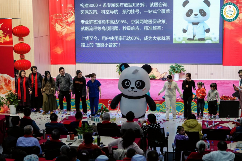 科技赋能便民就医成为本次年会的一大亮点。医院智能服务助手“康康”正式亮相,其构建了8000+条专属医疗数据知识库,涵盖就医咨询、医保政策、科室导航、预约挂号等全场景服务,专业解答准确率达95%,京冀两地医保政策等高频问题实现秒级响应,上线后用户使用率已达60%,成为百姓就医路上的“智能小管家”。现场,“康康”还带领大家开展健身操互动,传递健康生活理念,赢得现场与直播间观众的热烈反响。