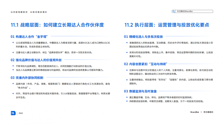 布兰德老白: 如果只给一个核心建议,那会是:回归用户,做真诚的价值连接。展开来说就是:别只盯着流量和GMV,先真正理解你的用户是谁,他们需要什么,喜欢什么。别把内容当成纯粹的广告,用心去创造能给用户带来价值(无论是实用价值还是情绪价值)的真诚内容。别把达人当成一次性的喇叭,选择那些真正认同你品牌价值、能与你的用户产生真实共鸣的伙伴,进行长期、平等的合作。
