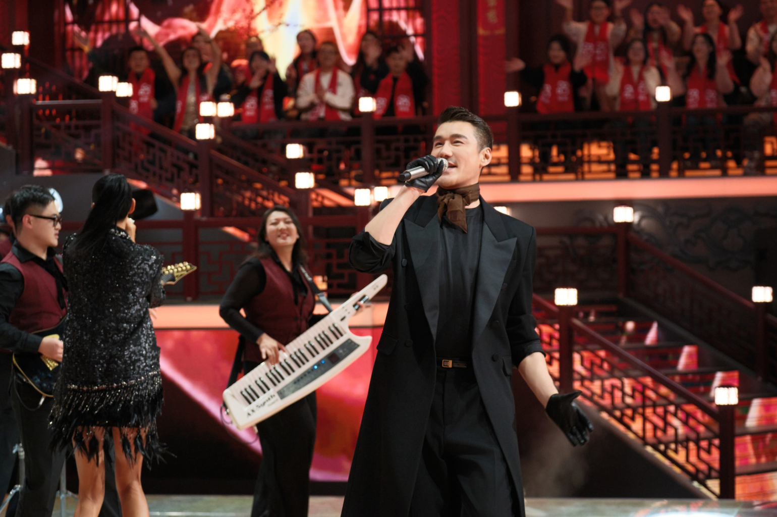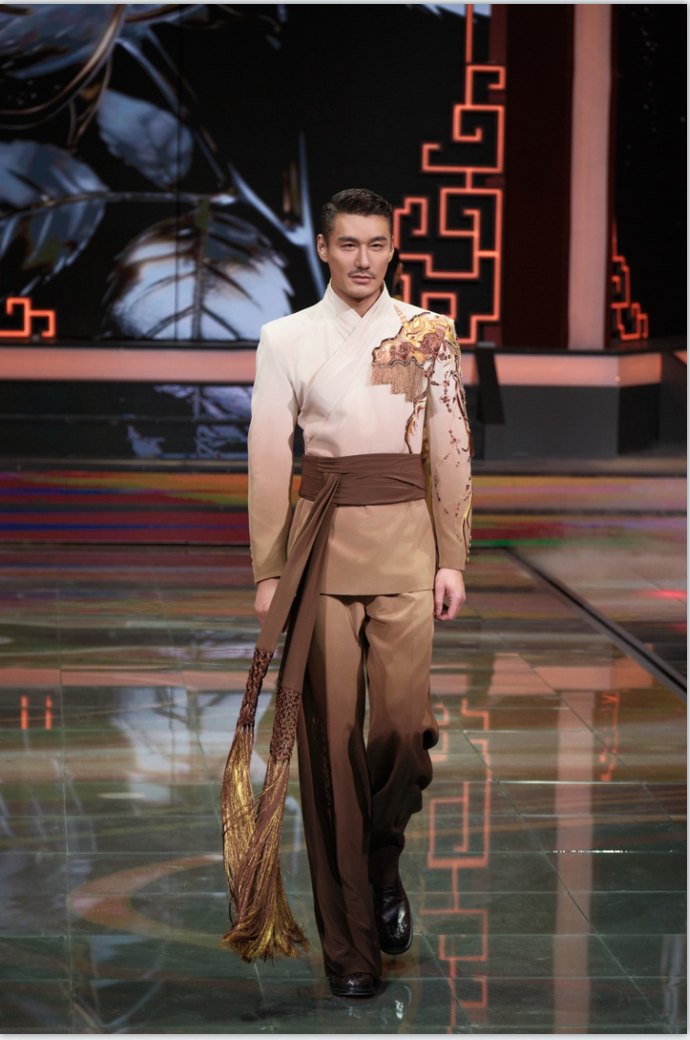 2月15日辽宁卫视春节联欢晚会上,胡兵与瞿颖带来《春律·加速度》。他身着中式国风华服完成走秀呈现,并在舞台推进中通过特效技术实现多套造型间的丝滑变装,使时装表达与舞台叙事自然衔接,在视觉层面形成鲜明记忆点。