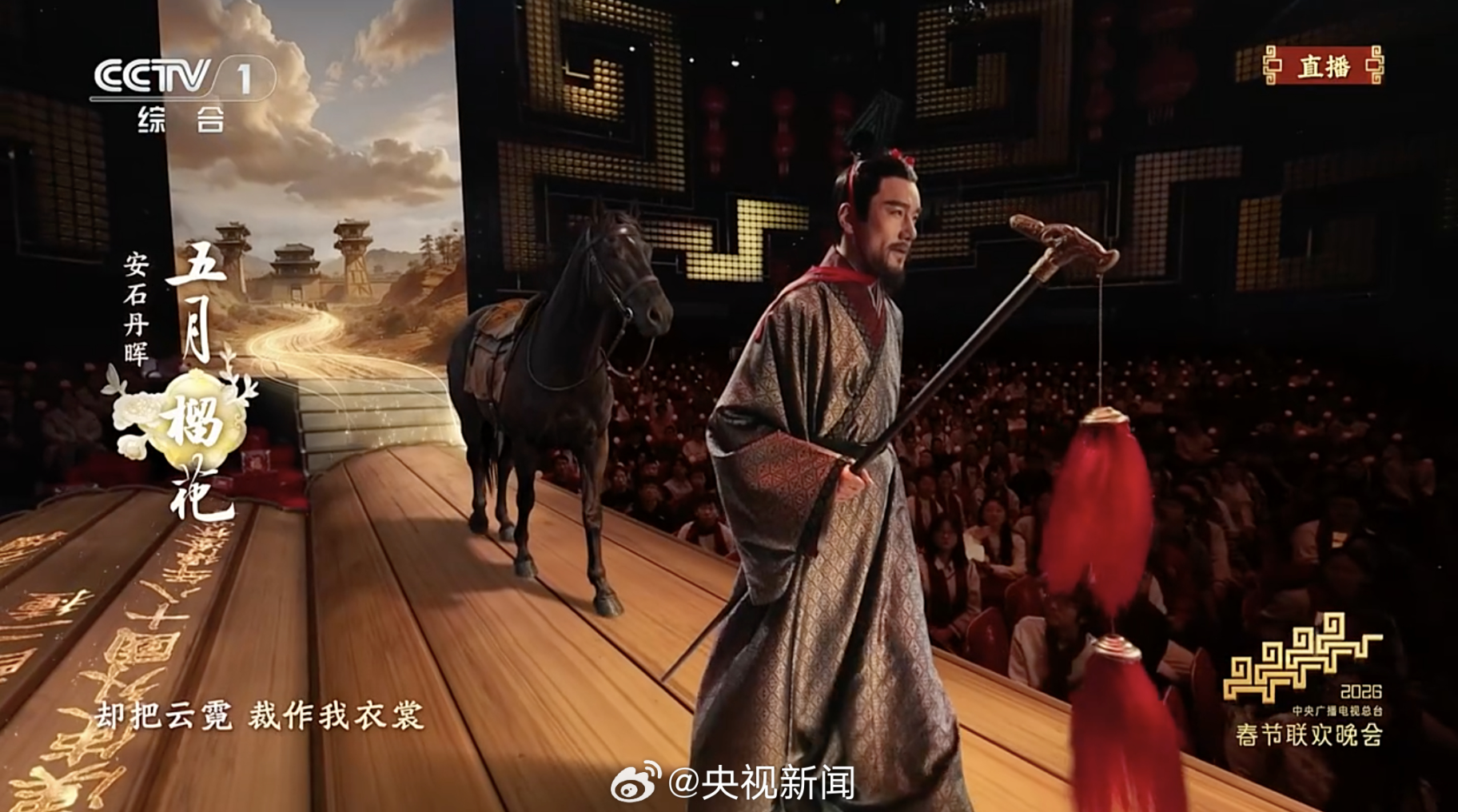 2月16日中央广播电视总台春节联欢晚会中,胡兵时隔24年再登央视春晚,亮相歌咏创意秀《贺花神》。他饰演榴花花神张骞,以历史人物意象融入整体节目表达,舞台背景结合西域意境展开,榴花元素随人物出现形成视觉定格,成为节目中的重要节点之一。