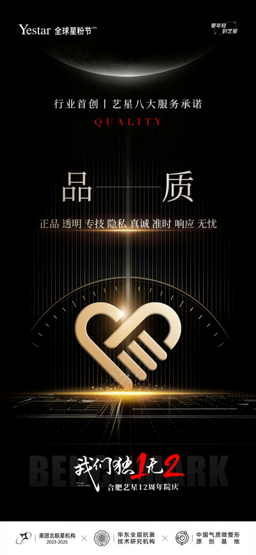 十二年,不只是时间的沉淀,更是品牌在品质、技术、服务、标准、态度、团队、城市责任与星品矩阵八大维度上,构建完整“坐标系”的高光时刻。合肥艺星以“独1无2”之姿,向安徽乃至全国医美行业定义出一份关于“独一”的答卷。
